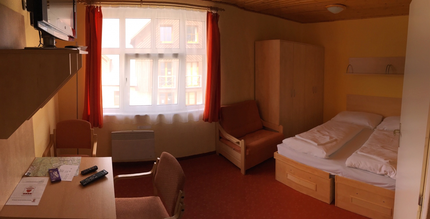 Vybavení apartmánu je moderní, účelné a zaměřené na maximální pohodlí. Obě místnosti jsou odděleny dveřmi a postele jsou koncipovány jako 2x dvě manželské postele.